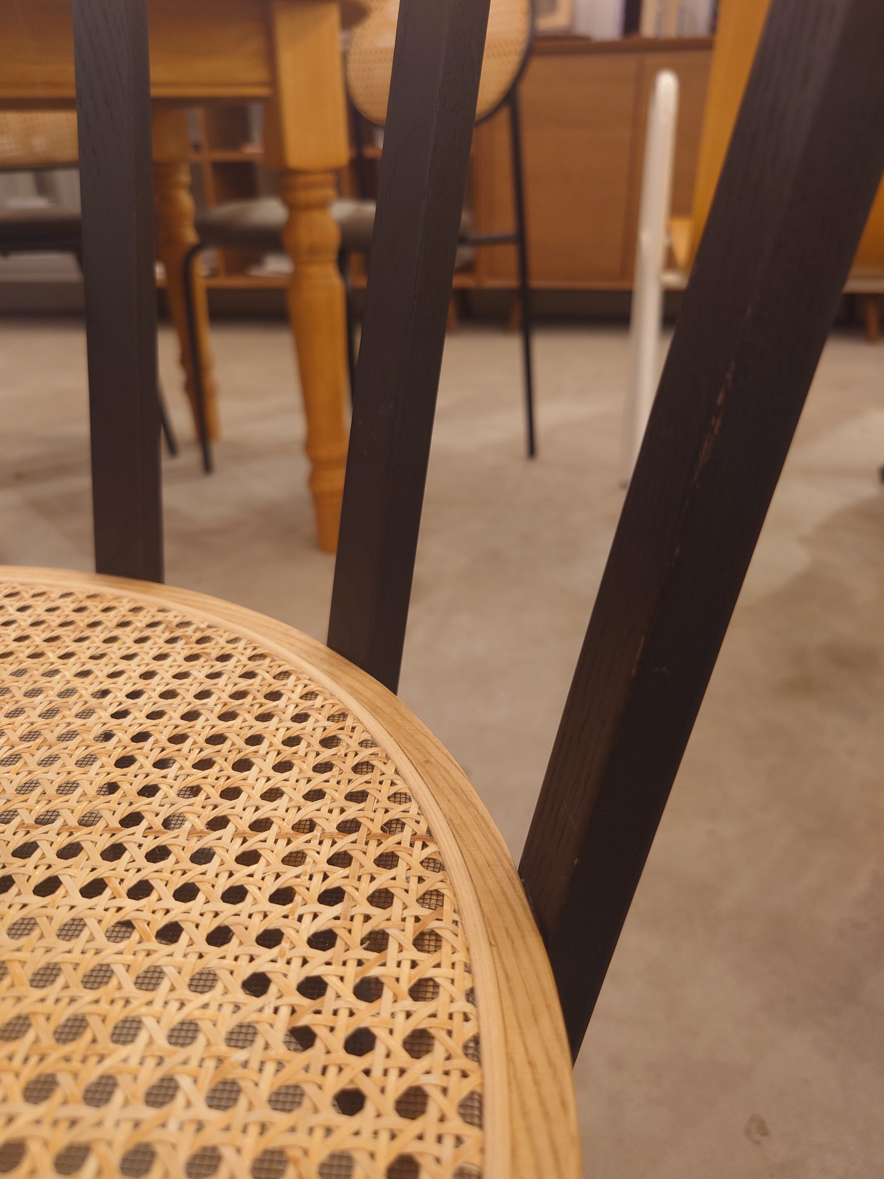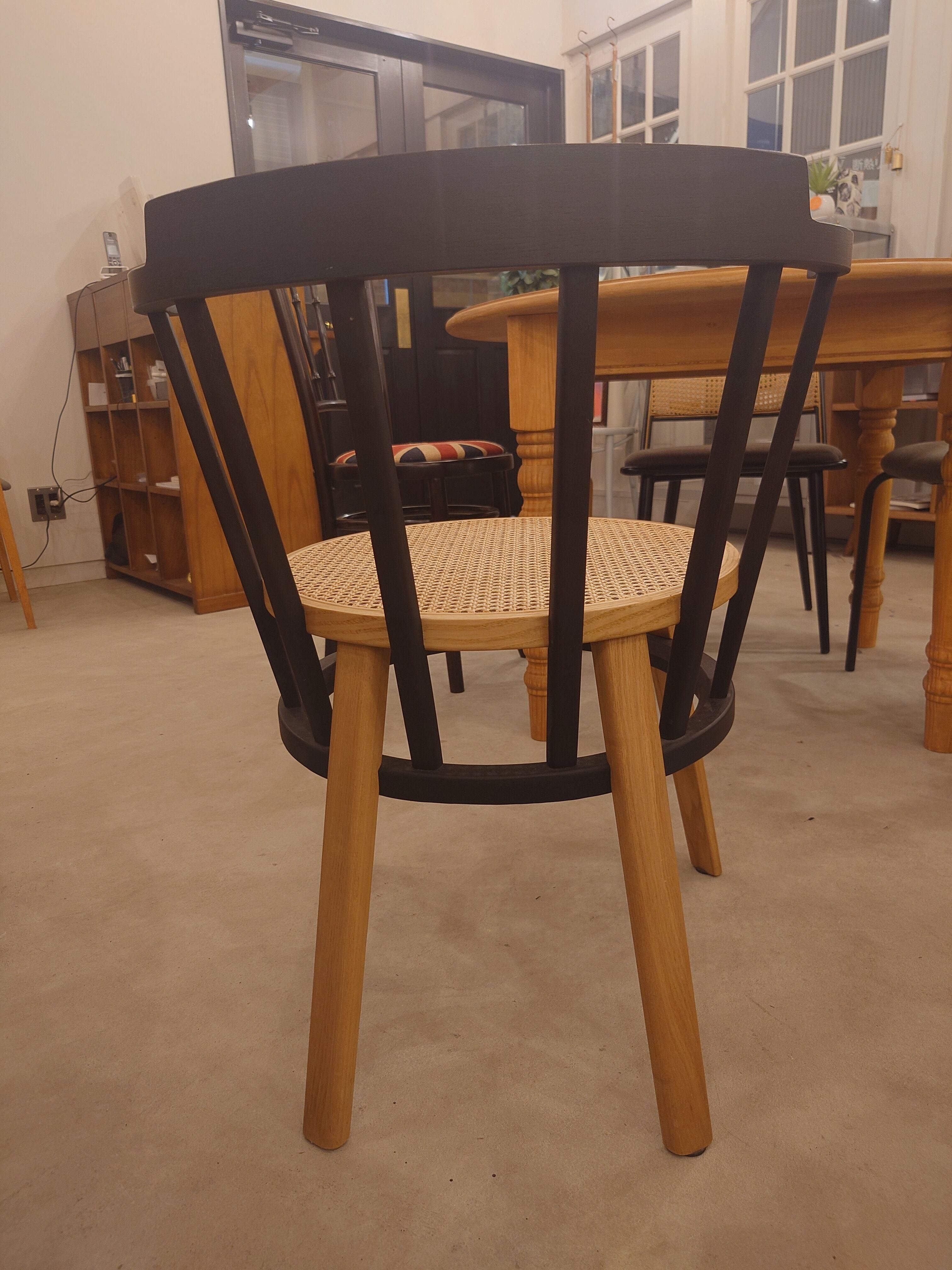 ウィンザーチェアをモチーフにしながら、トーネットの曲木椅子の構造も併せ持ちます。