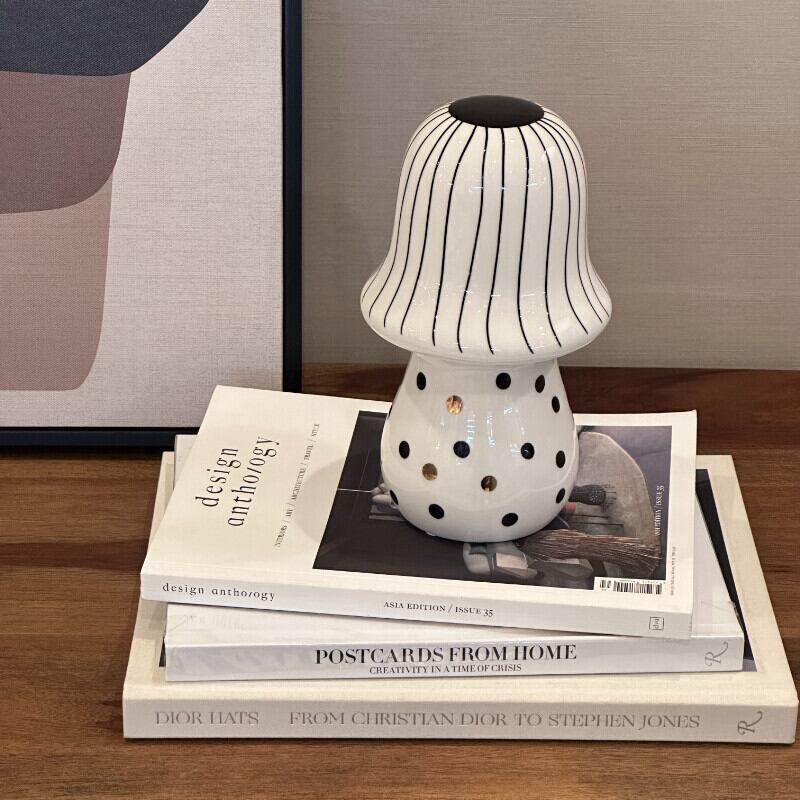 ストライプとドットがユニークなキノコオブジェ。